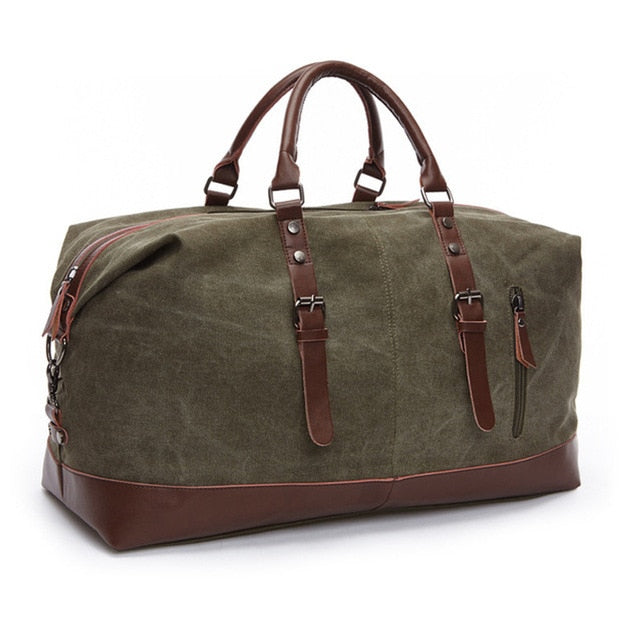 • Load image into Gallery viewer, Canvas Travel Bag Leather Large
